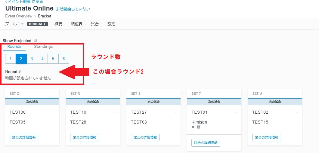 例で言うと「SET A」と表記されていれば、対戦IDはAとなります。